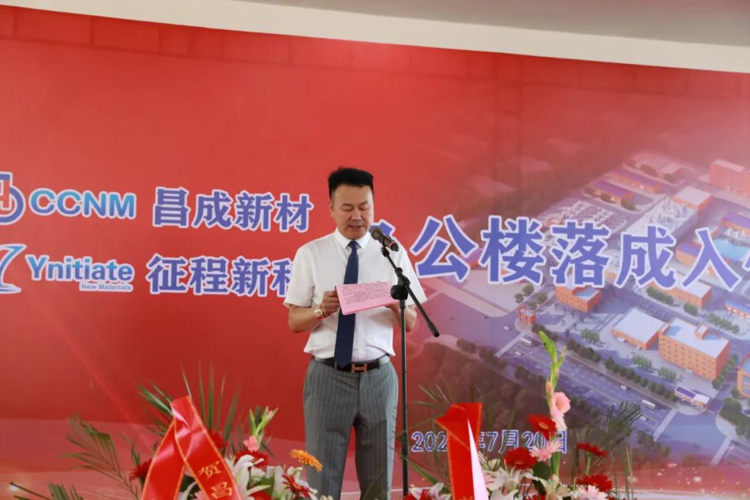 2021年7月20日,昌成新材廠區(qū)外彩旗飄揚、彩虹門佇立,新落成的辦公樓前,16個氫氣球帶著紅色的祝賀彩帶迎風飛舞,東門兩側張貼著鮮紅的對聯(lián):啟征程老中青合力劃槳乘風浪,誓昌成你我他同心揮毫繪江山,橫批:吉星高照,一樓員工食堂大廳人聲鼎沸、紅毯鋪地、綠植盎然,歡快的音樂縈繞四壁。昌成新材和征程新科辦公樓落成入住典禮將在這里隆重舉行。