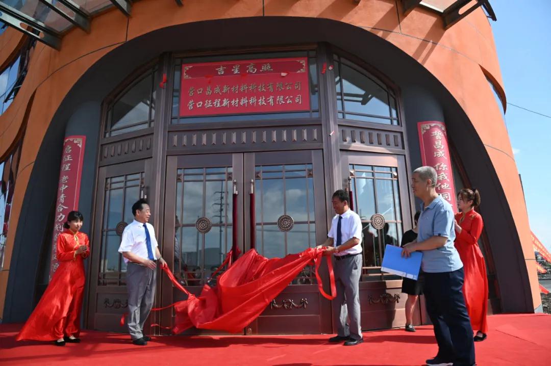 8時38分,鞭炮齊鳴,掌聲陣陣,昌成新材董事長李成金先生、征程新科董事長王瑞民先生共同為辦公樓揭幕。